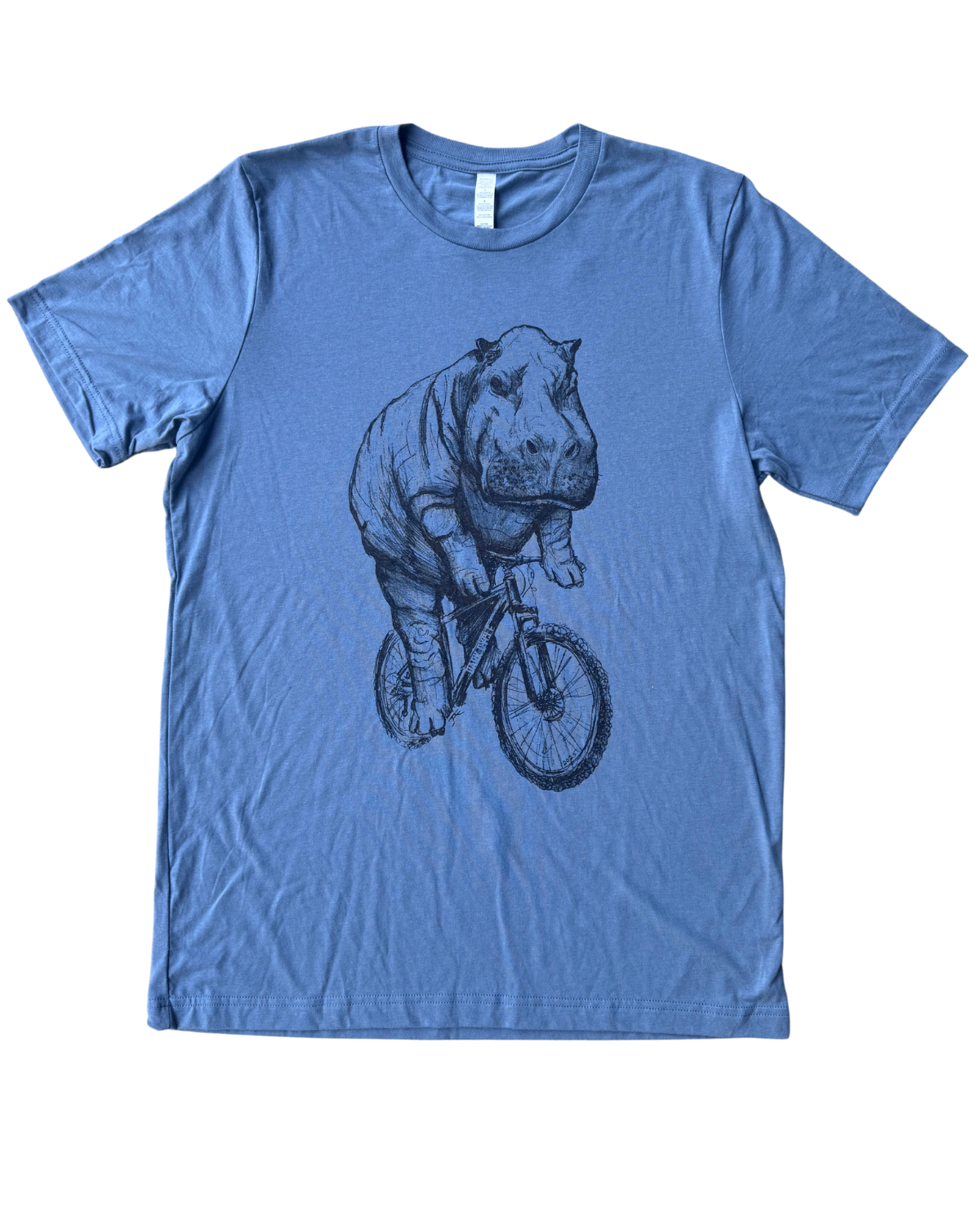 The Design: A hand drawn hippo on a bike